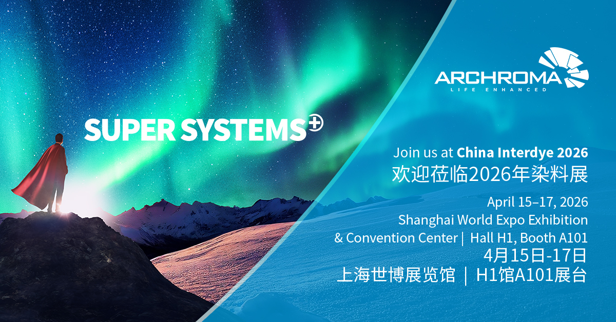 Underpinning every solution at China Interdye is Archroma's SUPER SYSTEMS+ platform – powerful end-to-end systems developed to address key challenges facing the textile industry today: high resource consumption, complex chemical management and the shift to circularity. Drawing on the industry's broadest product portfolio, SUPER SYSTEMS+ combine fiber-specific wet processing solutions, durable colors and intelligent effects to deliver measurable resource savings with cleaner chemistries that eliminate harmful or regulated substances. For China’s mills navigating rising consumer expectations and regulatory obligations, SUPER SYSTEMS+ provide a clear, proven path forward.